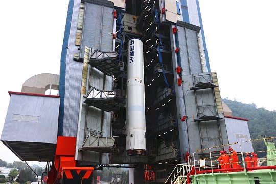 圖為開展長(zhǎng)三乙火箭吊裝。