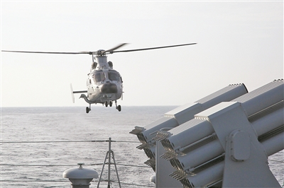 “上級(jí)通報(bào),我海區(qū)有‘?dāng)场瘽撏Щ顒?dòng),命我艦與直升機(jī)協(xié)同對(duì)其展開搜索與攻擊。”聞令而動(dòng),艦機(jī)迅速進(jìn)行協(xié)同訓(xùn)練。在直升機(jī)引導(dǎo)下,艦艇對(duì)水下潛艇展開有效攻擊……