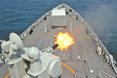 “上級(jí)命我艦立即對(duì)‘?dāng)场癁╊^陣地實(shí)施火力打擊!” 艦艇編隊(duì)剛抵達(dá)訓(xùn)練海域,某艦就接到任務(wù),官兵立即進(jìn)入戰(zhàn)斗狀態(tài)?!爸髋陂_始射擊。”一聲令下,主炮迅速鎖定目標(biāo)并實(shí)施打擊。此時(shí),雷達(dá)戰(zhàn)位發(fā)現(xiàn)又有空中目標(biāo)快速接近艦艇?!案迸诮M織射擊!”指揮員研判戰(zhàn)場(chǎng)態(tài)勢(shì)后,果斷下達(dá)攻擊命令。隆隆炮聲中,來(lái)襲目標(biāo)被擊中,空中威脅解除。