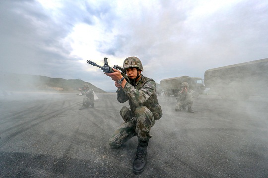 圖為車隊(duì)行進(jìn)間組織防衛(wèi)演練。李東東 攝
