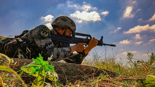 圖為孫金龍正在進(jìn)行據(jù)槍訓(xùn)練。李森 攝