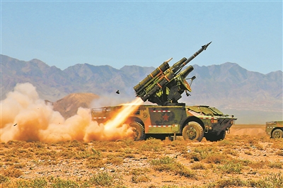 “發(fā)射!”一聲令下,幾枚導(dǎo)彈拖著尾焰撲向目標(biāo),成功摧毀“敵”機。