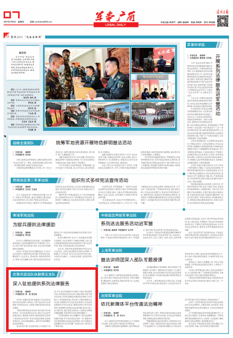 “類似這樣的普法宣講活動(dòng),我們每年至少組織兩次。”該支隊(duì)政委安會(huì)永說,他們立足法治軍營(yíng)建設(shè)特點(diǎn),邀請(qǐng)地方律師與抽組的部隊(duì)法律骨干組成普法宣傳分隊(duì),常態(tài)開展法治授課、法律咨詢等活動(dòng),為官兵提供最貼心、最有針對(duì)性和操作性的法律服務(wù)。