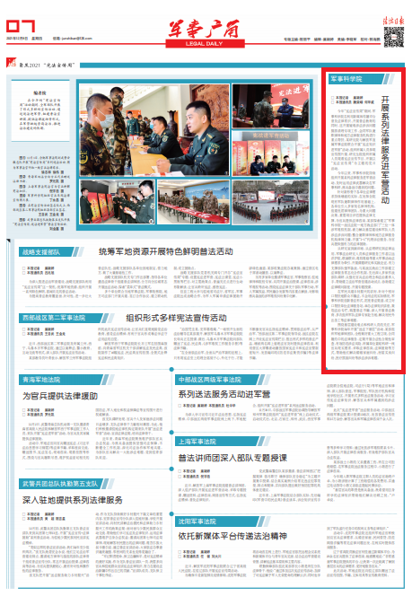 今年以來,軍事科學(xué)院持續(xù)組織開展系列法律服務(wù)進(jìn)軍營活動(dòng),及時(shí)運(yùn)用法律武器解決在軍事科研、練兵備戰(zhàn)中遇到的問題。