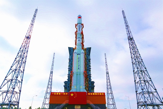 12月23日,中國(guó)文昌航天發(fā)射場(chǎng),距離大海約800米的發(fā)射平臺(tái)上,高大挺拔的長(zhǎng)征七號(hào)改遙三運(yùn)載火箭劍指蒼穹。乳白色的箭體上,一面鮮紅的五星紅旗圖案格外醒目。