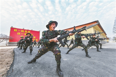 陸軍第71集團(tuán)軍某旅“紅三連”官兵發(fā)揚(yáng)“草地黨支部”的精神基因,賡續(xù)傳承紅軍血脈。圖為“紅三連”官兵正在進(jìn)行刺殺訓(xùn)練。潘成杰 攝