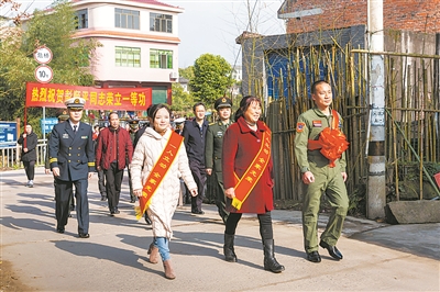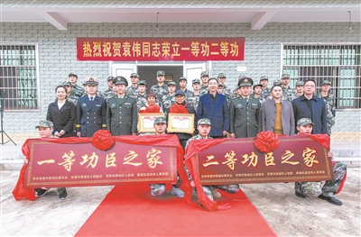 “袁偉真厲害啊,一年兩次立功!”“袁偉這么優(yōu)秀,我也想把兒子送到部隊(duì)去鍛煉鍛煉。”看著隊(duì)伍前方“一等功臣之家”和“二等功臣之家”兩塊熠熠生輝的牌匾,聞?dòng)嵹s來(lái)的鄉(xiāng)親羨慕之情溢于言表。