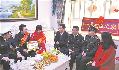 圖①:軍地領(lǐng)導(dǎo)、部隊(duì)官兵與袁偉的家人合影。孫浩 攝