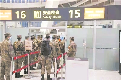 1月26日,南部戰(zhàn)區(qū)某調(diào)度中心桂林軍代室采用包機形式,組織某軍事院校學(xué)兵返營歸建。期間,他們聯(lián)合機場增設(shè)專用值機柜臺,增開綠色安檢通道,協(xié)調(diào)專人引導(dǎo)登機,確保運輸安全便捷。鄒旭東 攝