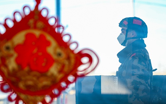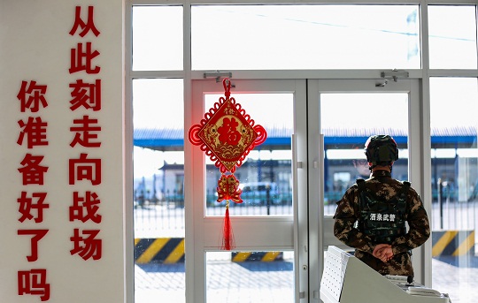 圖為武警執(zhí)勤官兵在某執(zhí)勤卡點定點執(zhí)勤。侯崇慧 攝