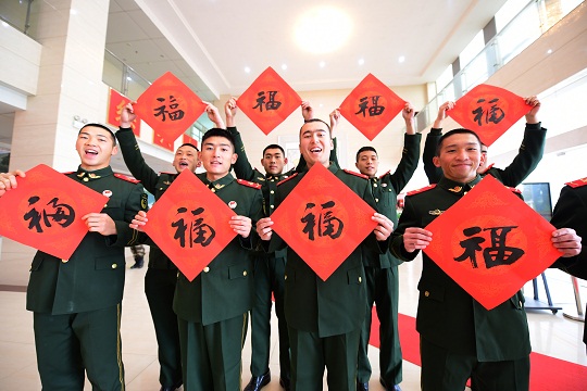 1月27日,武警江西總隊機動支隊組織書法愛好者為基層大、中隊官兵寫春聯(lián)、送福字,喜慶祥和迎春節(jié)。
