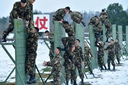 武警湖北總隊機動支隊針對訓練課目特點,根據(jù)軍事訓練大綱要求分級、分層組訓,提高訓練質量。2月8日,該支隊新戰(zhàn)士進行了“三人協(xié)作攀登”訓練。