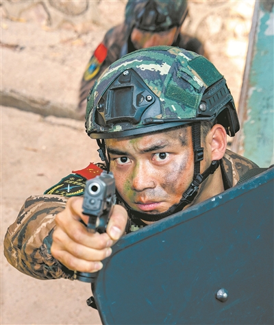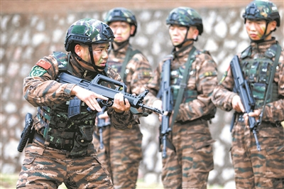 2月上旬,桂中腹地。一棟廢棄樓房?jī)?nèi),武警特戰(zhàn)隊(duì)員正在進(jìn)行隱蔽突擊訓(xùn)練?!跋旅婵次沂痉叮 爆F(xiàn)場(chǎng)組織教學(xué)的是武警廣西總隊(duì)機(jī)動(dòng)支隊(duì)參謀邱健。他的動(dòng)作精準(zhǔn)迅捷,勢(shì)如猛虎,贏得官兵一片叫好聲。
