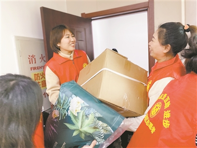 羅雅楠(左二)所在社區(qū),是群眾公認(rèn)的環(huán)境美、生活美、心靈美“三美”社區(qū)。平時(shí),她常與志愿者一起關(guān)愛(ài)社區(qū)孤寡老人,為他們提供幫助。邵天亮 攝