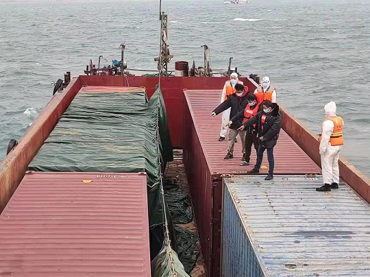 該局繼續(xù)加大“兩反”執(zhí)勤執(zhí)法力度,連續(xù)作戰(zhàn),于次日凌晨1時許根據(jù)線報指引,派遣執(zhí)法艇前往外伶仃島附近海域開展查緝行動。到達(dá)目標(biāo)海域后,海警執(zhí)法員快速鎖定了一艘無舷號可疑船舶,當(dāng)即拉響警報令其停船并接受檢查,但嫌疑船只拒不停船,并加速逃竄。該局隨即采取指揮艇與摩托艇夾擊態(tài)勢高速追擊,經(jīng)過幾輪周旋,最終成功逼停該可疑船只。經(jīng)登臨檢查發(fā)現(xiàn),該船有船員3人,載有無合法手續(xù)冷凍豬肚一批,船上人員均無法提供任何有效船舶證件、貨物合法來源證明及檢驗檢疫證明等相關(guān)資料,涉嫌走私。海警執(zhí)法員隨即將涉案船舶及所載凍品查扣,抓獲涉案人員3人。
