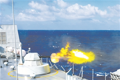 “戰(zhàn)斗警報(bào)!”戰(zhàn)艦剛剛抵達(dá)訓(xùn)練海域,便遭遇“敵”海上目標(biāo)。官兵們迅速進(jìn)入戰(zhàn)斗狀態(tài),作戰(zhàn)指揮室內(nèi)口令聲、鍵盤聲此起彼伏?!皵场迸灺氏乳_火,官兵隨即組織副炮對(duì)來(lái)襲目標(biāo)進(jìn)行防御抗擊。同時(shí),主炮快速鎖定海上目標(biāo)并對(duì)其實(shí)施打擊。霎時(shí),訓(xùn)練海域炮火紛飛、硝煙彌漫。