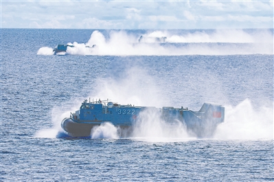 海上威脅剛解除,新的“敵”情傳來(lái)。接到命令,數(shù)艘氣墊艇搭載登陸兵力駛離母艦,在海上組成登陸編隊(duì),朝目標(biāo)高速奔襲……