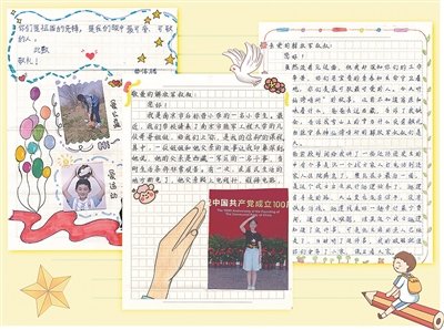 圖①:南京市后標(biāo)營(yíng)小學(xué)學(xué)生寫給梧桐溝邊防連官兵的信。楊磊 設(shè)計(jì)制作
