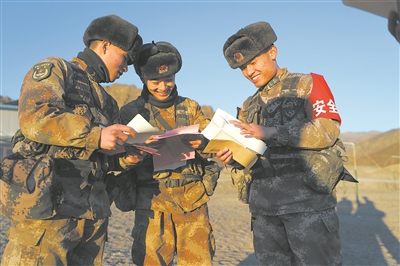 圖②:梧桐溝邊防連官兵閱讀學(xué)生來(lái)信。魯寅壽 攝