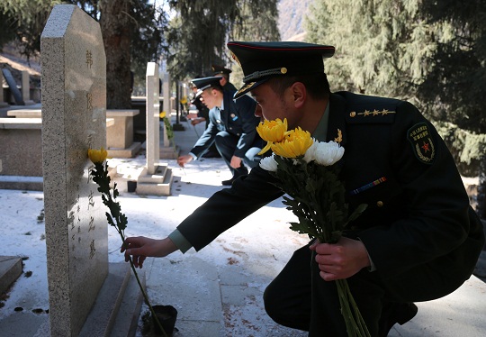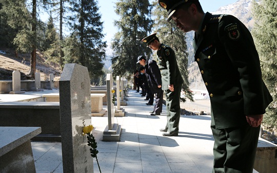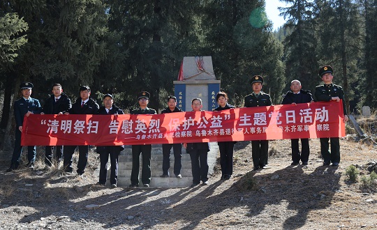 清明時(shí)節(jié),解放軍烏魯木齊軍事檢察院聯(lián)合新疆維吾爾自治區(qū)烏魯木齊縣人民檢察院檢察官,來到天山后峽216國(guó)道旁一處零散烈士墓,開展“清明祭掃、告慰英烈、保護(hù)公益”主題黨日活動(dòng)。