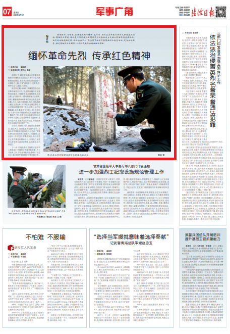 清明時(shí)節(jié),為傳承、弘揚(yáng)英雄烈士精神,連日來,部隊(duì)官兵開展不同形式祭奠英烈活動(dòng)。英雄烈士事跡、精神是中華民族的共同歷史記憶和社會(huì)主義核心價(jià)值觀的重要體現(xiàn),他們的功勛彪炳史冊(cè),精神永垂不朽。在清明節(jié)組織開展英雄烈士紀(jì)念活動(dòng),是為永遠(yuǎn)尊崇、銘記英雄烈士為國(guó)家、人民和民族作出的犧牲和貢獻(xiàn)。