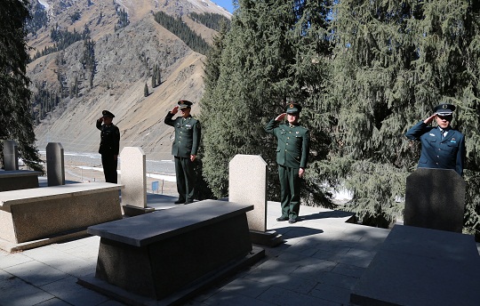 圖為烏魯木齊軍事檢察院檢察官向英烈敬禮致敬。彭建 攝