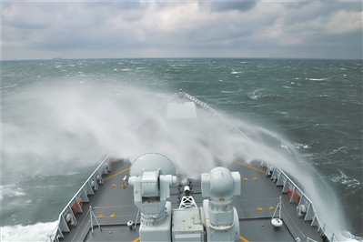 圖①:大洋深處,戰(zhàn)艦劈波斬浪。