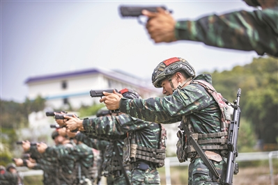 武警廣西總隊(duì)北海支隊(duì)組織特戰(zhàn)隊(duì)員進(jìn)行精度射擊、槍種轉(zhuǎn)換射擊等課目訓(xùn)練,錘煉官兵制勝本領(lǐng)。
