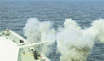 圖①:參訓艦艇主炮對海射擊。
