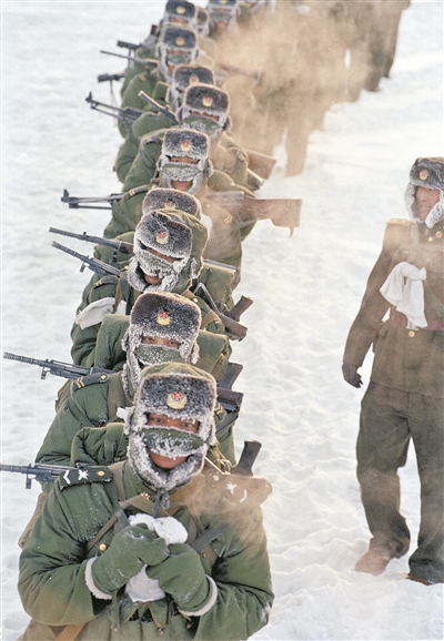 冰,是北國邊陲最獨(dú)特的一道風(fēng)景。北疆的冰雪因士兵而獲得了生命。圖為在敲響世紀(jì)之交的鐘聲時,官兵行走在祖國的北疆邊防線上。馮凱旋 攝
