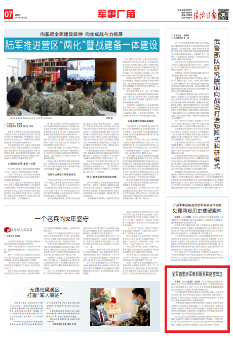 “軍事法院擔(dān)負(fù)提供涉軍維權(quán)服務(wù)職能,在基層設(shè)立涉軍維權(quán)服務(wù)聯(lián)絡(luò)室,也是回應(yīng)官兵殷切期盼。下一步,我們將聚焦一線部隊(duì)官兵需求,將此項(xiàng)工作機(jī)制在駐鄂部隊(duì)普遍推開,構(gòu)建多軍兵種區(qū)域性涉軍維權(quán)服務(wù)網(wǎng)絡(luò),為部隊(duì)和軍人軍屬提供全方位精準(zhǔn)化維權(quán)服務(wù)和法律保障。”武漢軍事法院院長古海源說。