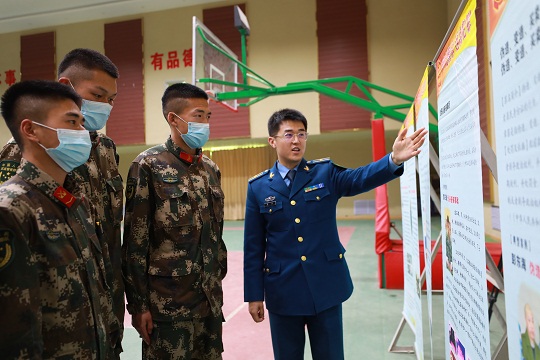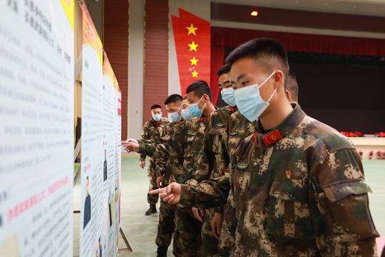 圖為官兵觀看民法典掛圖。