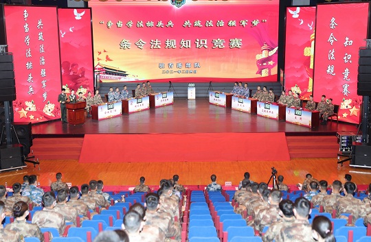 圖為官兵們進行條令法規(guī)知識競賽。易定 攝
