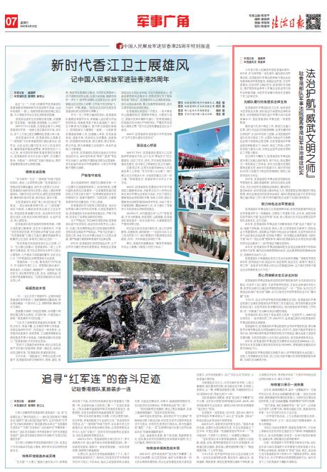 駐香港部隊(duì)少將副政治委員王兆兵對此深有感觸:“香港駐軍進(jìn)駐25年來,堅(jiān)持依法行動(dòng)、依法治訓(xùn)、依法管理、依法交往,被譽(yù)為‘威武文明之師’,連續(xù)多年民調(diào)顯示民眾認(rèn)同感超過90%,這與我們持續(xù)開展法治宣傳教育是分不開的?!?/p>