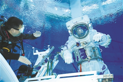 這是該中心模擬出艙訓(xùn)練的主要場地。航天員教員趙陽與航天員一起開展水下訓(xùn)練,已很長時(shí)間。一旦忙起來,趙陽一天只睡4個(gè)小時(shí)、吃一頓飯。教員的任務(wù)是分解每個(gè)動(dòng)作,細(xì)化每個(gè)姿態(tài),幫助航天員迅速、安全地找到返回的路。