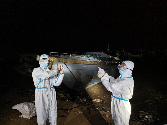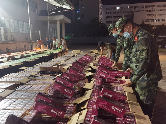 針對(duì)臺(tái)風(fēng)“暹芭”剛過境,走私分子可能會(huì)心存僥幸利用較低潮位從事走私活動(dòng)的現(xiàn)實(shí)情況,該局科學(xué)研判,嚴(yán)密部署執(zhí)法力量加強(qiáng)轄區(qū)管控。7月6日晚23時(shí)許,在轄區(qū)海域蹲守的海警執(zhí)法員發(fā)現(xiàn)有不明“大飛”蹤跡,經(jīng)過圍追堵截最終將涉嫌走私“大飛”一舉抓獲,現(xiàn)場(chǎng)抓獲涉案嫌疑人兩名,查獲涉嫌走私香煙一批,該船后置5臺(tái)“雅馬哈”機(jī)頭,總馬力超1000匹。經(jīng)合浦縣疾控中心對(duì)上述涉案物品及人員進(jìn)行消殺、核酸檢測(cè),結(jié)果均為陰性。經(jīng)清點(diǎn),查獲美國“百樂”牌香煙約400件,共計(jì)1.9萬余條,總案值約500萬元。目前,該案件正在進(jìn)一步深挖擴(kuò)線中。