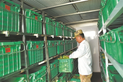 本報訊 記者孫興維、通訊員王沛報道:盛夏時節(jié),記者從正在海拔4000多米高原駐訓的新疆軍區(qū)某部獲悉,上級為他們配發(fā)的集裝箱型野戰(zhàn)菜窖好用耐用,使得難儲葉菜保鮮時間延長、保鮮效果更好。