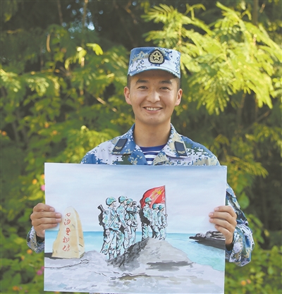 生長(zhǎng)在新疆的我,從小就向往大海,夢(mèng)想著成為一名海軍戰(zhàn)士。幸運(yùn)的是,2年前,這個(gè)夢(mèng)想成真了。然而上島后,理想與現(xiàn)實(shí)的差距曾讓我一度感到迷茫。直到有一次與在島上待了10余年的軍醫(yī)聊天,我才改變了對(duì)守島的認(rèn)識(shí),開始懂得了堅(jiān)守的意義。也是從那時(shí)開始,我發(fā)揮特長(zhǎng),用畫筆記錄西沙的壯麗風(fēng)光、守島官兵的訓(xùn)練生活。