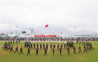 圖為駐香港部隊官兵進行儀仗隊列表演。易定 攝