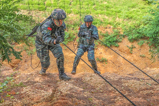 圖為特戰(zhàn)隊員正在進行攀登訓(xùn)練。