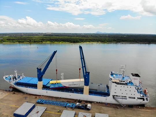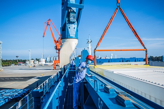 8月下旬,兩艘火箭運輸船先后從天津港起航,先期出發(fā)的遠望21號船經過6晝夜的海上航行,途經渤海、黃海、東海、南海等海域,于8月29日安全??亢D衔牟鍨懜邸kS后出發(fā)的遠望22號船于9月1日抵達清瀾港,到達港口后兩船立即展開了火箭吊裝相關工作。