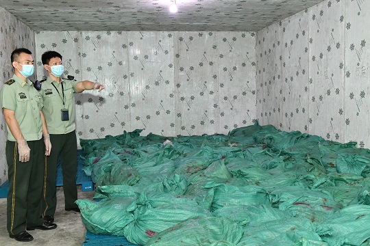今年以來,海南檳榔種植業(yè)大幅減產(chǎn),鮮檳榔果價格持續(xù)飆升。該團(tuán)伙為牟取暴利,通過利用快艇海上轉(zhuǎn)運和貨車夾藏攜運的方式將境外鮮檳榔果從海、陸兩個方向轉(zhuǎn)運入瓊。近日,經(jīng)過分析研究和偵查,海南海警局執(zhí)法人員在全面摸清犯罪鏈條且抓捕時機(jī)成熟后,聯(lián)合海南省公安廳、??诤jP(guān)緝私局、湛江市公安局、昆明海關(guān)緝私局等部門在瓊、粵、桂、滇四省統(tǒng)一開展收網(wǎng)行動。各部門周密配合、協(xié)同作戰(zhàn)、海陸聯(lián)動,一舉斬斷了5個鮮檳榔果走私鏈條,查證涉案走私新鮮檳榔果360余噸。此案為海南海警局成立以來經(jīng)辦涉案走私鮮檳榔數(shù)量最大的一宗案件。