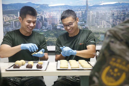該局精心策劃相關(guān)事宜,提前定制特殊模具,指派專人指導(dǎo)月餅制作。為讓小小月餅吃出滿滿的“儀式感”,執(zhí)法員們將一抹抹鄉(xiāng)愁融進了月餅里,把一句句祝福包在了月餅中。“中國海警”、“海疆衛(wèi)士”、“不忘初心”、“絕對忠誠”……一個個獨具海警特色的月餅記錄了海警人的家國情懷。