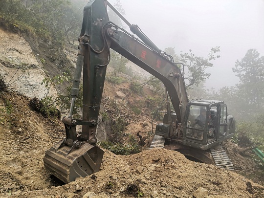 圖為山地挖掘機清理塌方體。