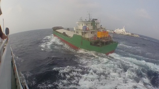 當(dāng)日凌晨2時許,廣東海警局接群眾報警稱,在擔(dān)桿水道附近海域有一艘可疑船舶往擔(dān)桿島以南附近海域航行。接報后,該局立即派遣執(zhí)法艇前往目標(biāo)海域進(jìn)行查緝。執(zhí)法艇到達(dá)目標(biāo)海域后對海面全方位進(jìn)行搜索,并在凌晨4時30分,成功在目標(biāo)海域發(fā)現(xiàn)該艘可疑船只。執(zhí)法員隨即對其進(jìn)行喊話示警,但該嫌疑船拒不停船接受檢查,且試圖改變航向,加速逃竄,執(zhí)法艇立即調(diào)整航向航速對其進(jìn)行追緝。
