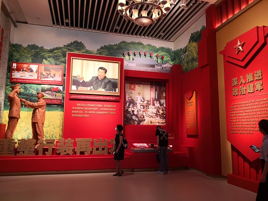 在“重整行裝再出發(fā)”專題展項(xiàng),“古田會(huì)議永放光芒”八個(gè)大字,將人們的思緒帶到福建省上杭縣古田村。1929年,紅四軍黨的第九次代表大會(huì)在此召開,確立了“思想建黨、政治建軍”的原則,確立了黨對軍隊(duì)的絕對領(lǐng)導(dǎo)。2014年,全軍政治工作會(huì)議在這里召開,對新時(shí)代政治建軍作出部署,恢復(fù)和發(fā)揚(yáng)我黨我軍光榮傳統(tǒng)和優(yōu)良作風(fēng),以整風(fēng)精神推進(jìn)政治整訓(xùn),全面加強(qiáng)軍隊(duì)黨的領(lǐng)導(dǎo)和黨的建設(shè),深入推進(jìn)軍隊(duì)黨風(fēng)廉政建設(shè)和反腐敗斗爭,推動(dòng)人民軍隊(duì)政治生態(tài)根本好轉(zhuǎn)。自此開啟思想建黨、政治建軍新征程。