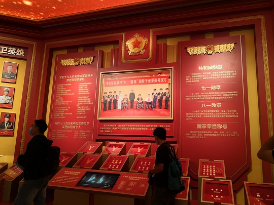 圖為“崇尚榮譽(yù) 奮斗強(qiáng)軍”專題展區(qū)。