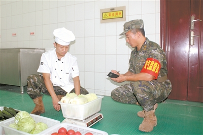 圖為高佳旭正在對(duì)伙食配送進(jìn)行監(jiān)督。張廣彬 攝