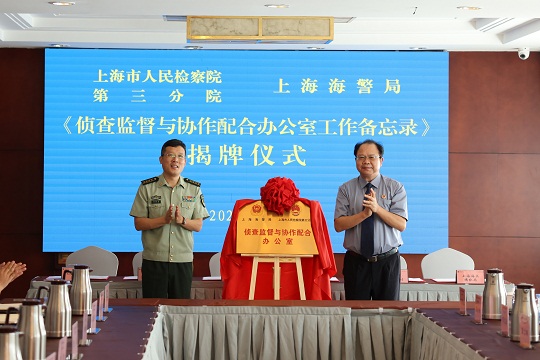在與會單位見證下,上海市人民檢察院第三分院與上海海警局偵查監(jiān)督與協作配合辦公室正式成立并揭牌。這標志著雙方執(zhí)法司法制約監(jiān)督體系更加規(guī)范高效,為今后各自履行法定職責翻開了新的篇章。
