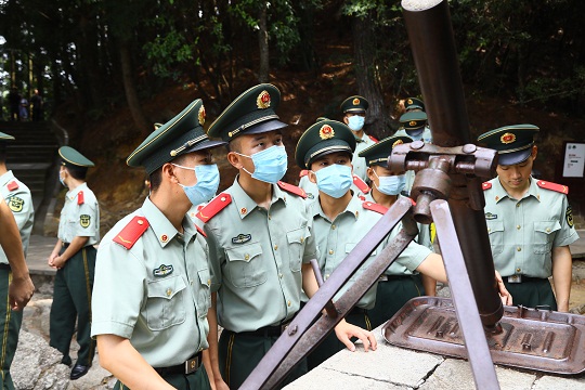 圖為武警井岡山中隊新兵在井岡山黃洋界保衛(wèi)戰(zhàn)舊址了解革命故事。